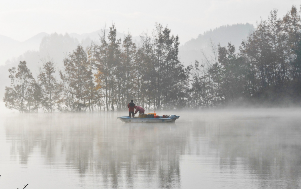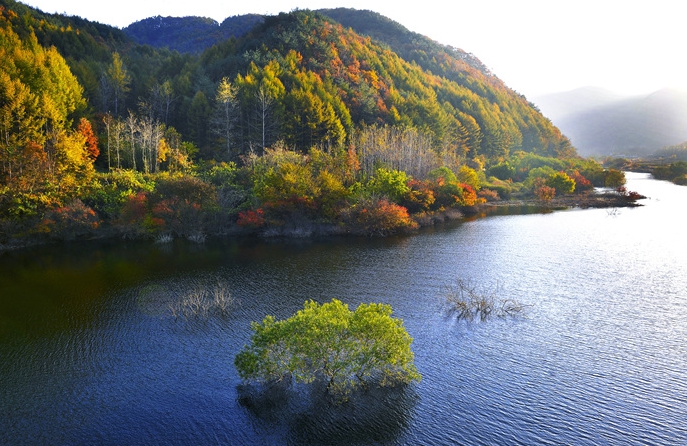 “용담댐 단풍은 거울 같은 수면 위에서 빛나요”