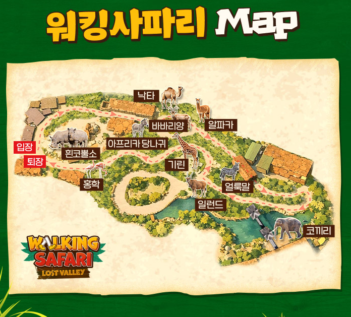 직접 도보로 로스트밸리 동물을 관찰하며 기존과는 다른 몰입감을 선사하는 것이 특징이에요.
