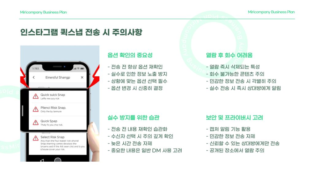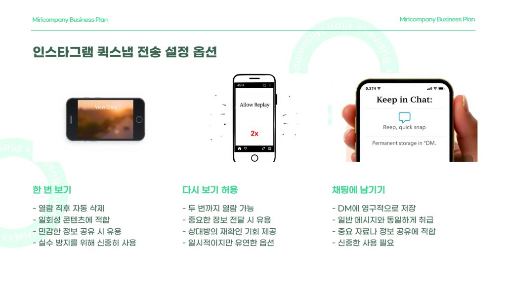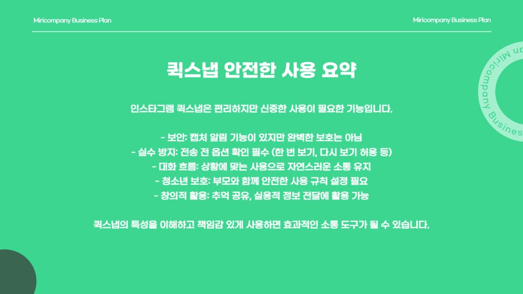 인스타 퀵스냅은 빠르게 사라지는 만큼, 빠르게 판단해야 하는 기능이에요. 보안, 실수 방지, 대화 흐름까지 모두 고려해서 신중하게 사용하는 것이 필요합니다.