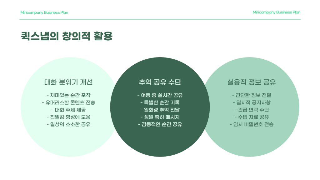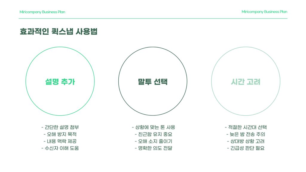 밤늦게, 혹은 예고 없이 퀵스냅을 보내면 괜한 오해로 번질 수 있으니, 사용 전 맥락을 짚어보는 센스가 필요하답니다.