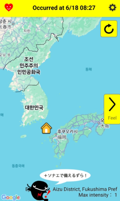 하지만 위치 설정에서 한 가지 주의할 점이 있습니다. 이 어플은 일본 전용이라 한국 지역은 선택할 수 없어요. 그래서 한국과 지리적으로 가까운 일본 지역인 ‘나가사키 – 데시마’를 선택하는 것이 가장 효과적입니다. 이렇게 설정해두면, 한반도 인근에서 발생하는 지진도 어느 정도 커버할 수 있어요.