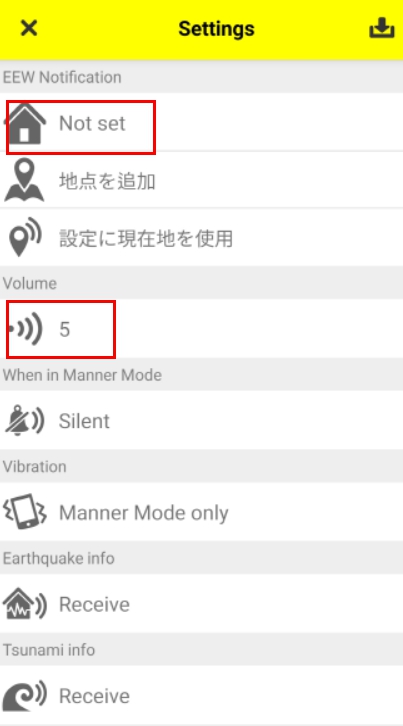 지진알림어플 유레쿠르 설정 방법의 마지막 단계는 저장 버튼 클릭입니다. 설정을 다 마친 후 오른쪽 상단의 저장 아이콘을 꼭 눌러야 변경 사항이 적용돼요. 설정을 마친 후에는 집 모양 아이콘이 뜨는 위치가 선택한 지점(예: 데시마)인지 다시 한번 확인해 주세요.