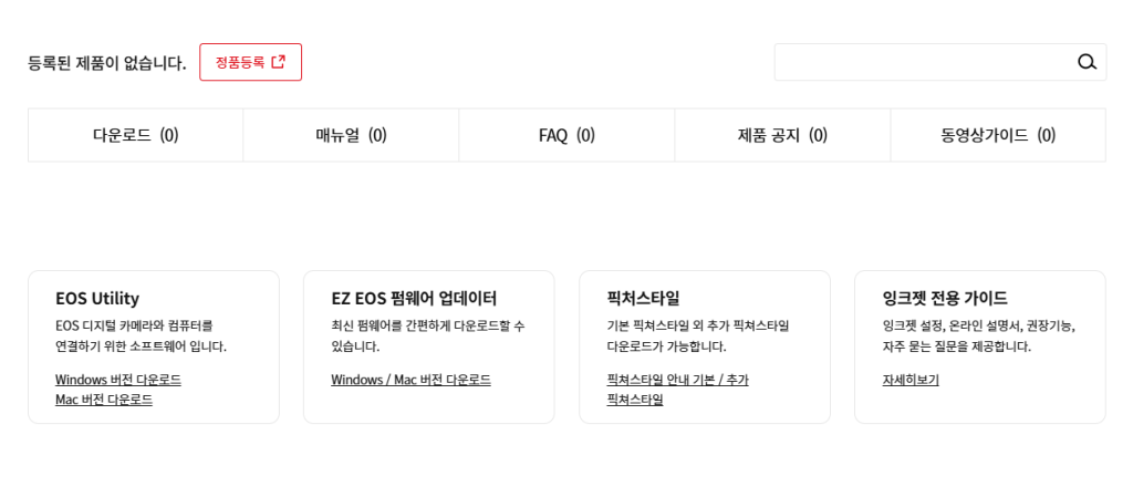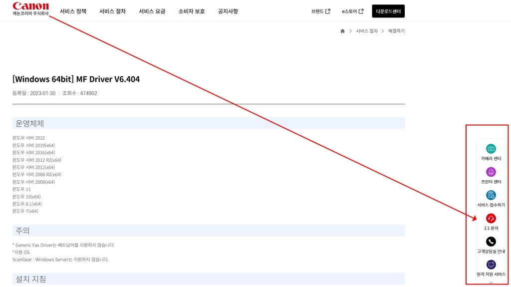 캐논 프린터 드라이버는 반드시 공식 홈페이지에서 다운로드하셔야 합니다. 홈페이지 접속 후, 상단 메뉴에서 ‘다운로드센터’를 클릭하면 제품 검색이 가능합니다.