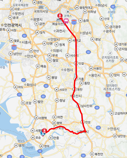 Q. 서울남부터미널에서 안중터미널까지 얼마나 걸리나요?