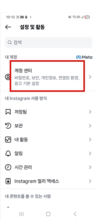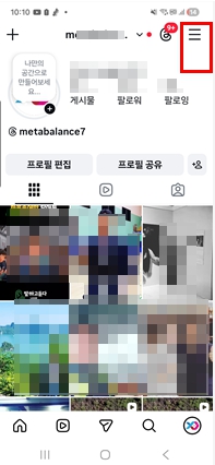 이곳은 인스타그램과 페이스북 등 메타 산하 서비스의 모든 계정 설정과 보안을 통합 관리하는 허브와 같은 공간인 거죠. 앱 실행 후 프로필 화면에서 메뉴 아이콘을 눌러 전체 설정 목록을 불러오는 게 시작이더라고요.