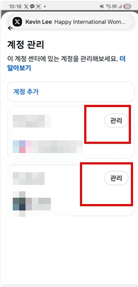 이어서 나타나는 하위 메뉴 중 ‘계정 소유권 및 관리’를 선택합니다. 다음 화면에서는 ‘비활성화 또는 삭제’ 항목을 터치하게 돼요. 만약 여러 프로필이 연동되어 있다면, 여기서 삭제하고자 하는 대상을 정확하게 선택해야 하는 점에 유의해야 해요.