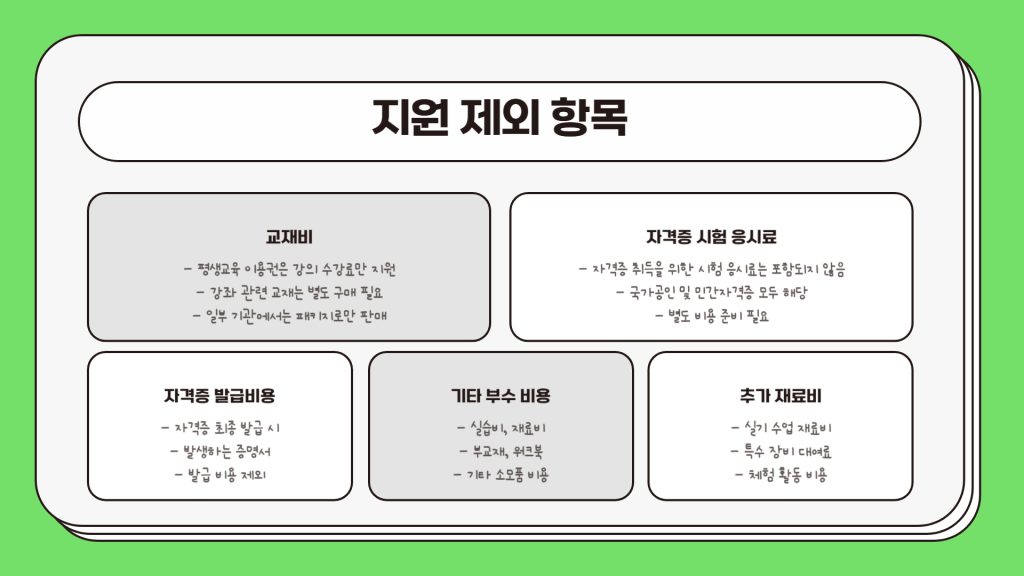 다만 교재비나 응시료, 자격증 발급비 같은 부수 비용은 포함되지 않으니 참고해주세요.