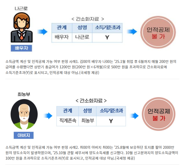 다음으로 퇴직소득에 대한 기준도 중요해요. 만약 부양가족이 2025년도에 퇴직금을 받았다면, 이 퇴직금 소득금액이 100만원을 초과할 경우 부양가족 공제 대상에서 제외됩니다. 퇴직소득은 일시적으로 발생하는 큰 소득이라서 이 부분을 잘 확인해야 해요.